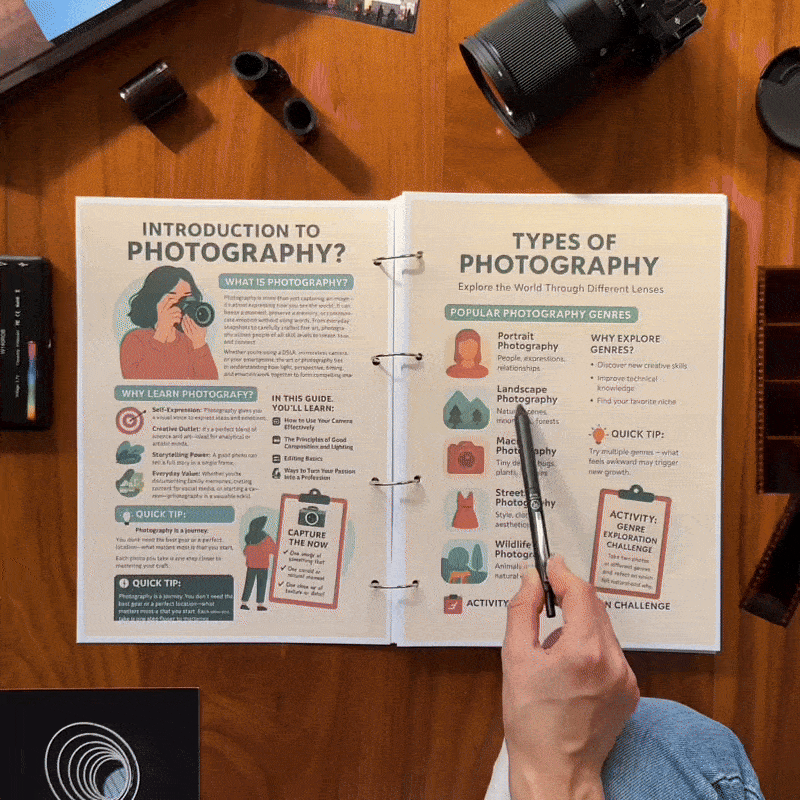 Photography Notes give you a clear, empowering path to improve — no more random YouTube dives or guesswork.